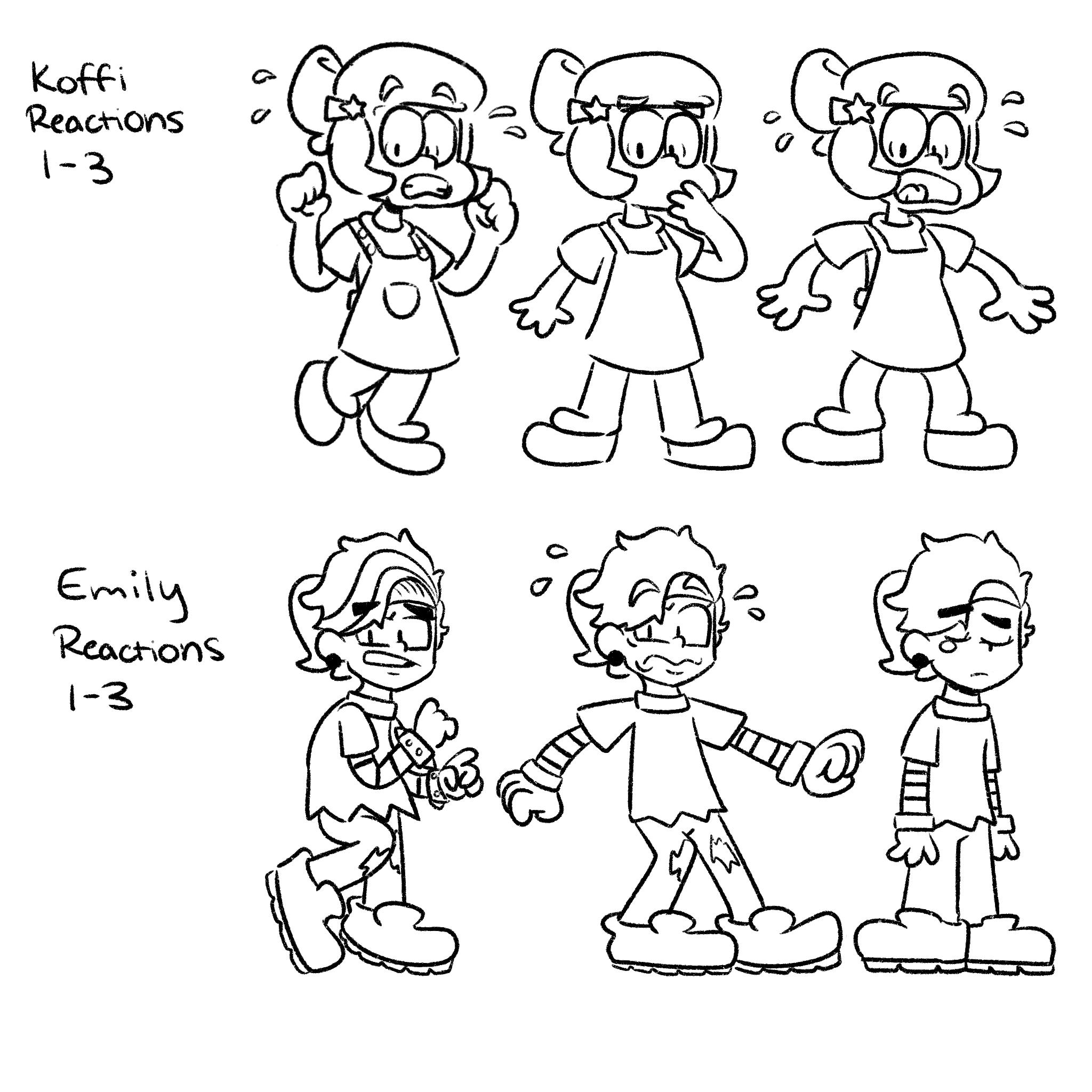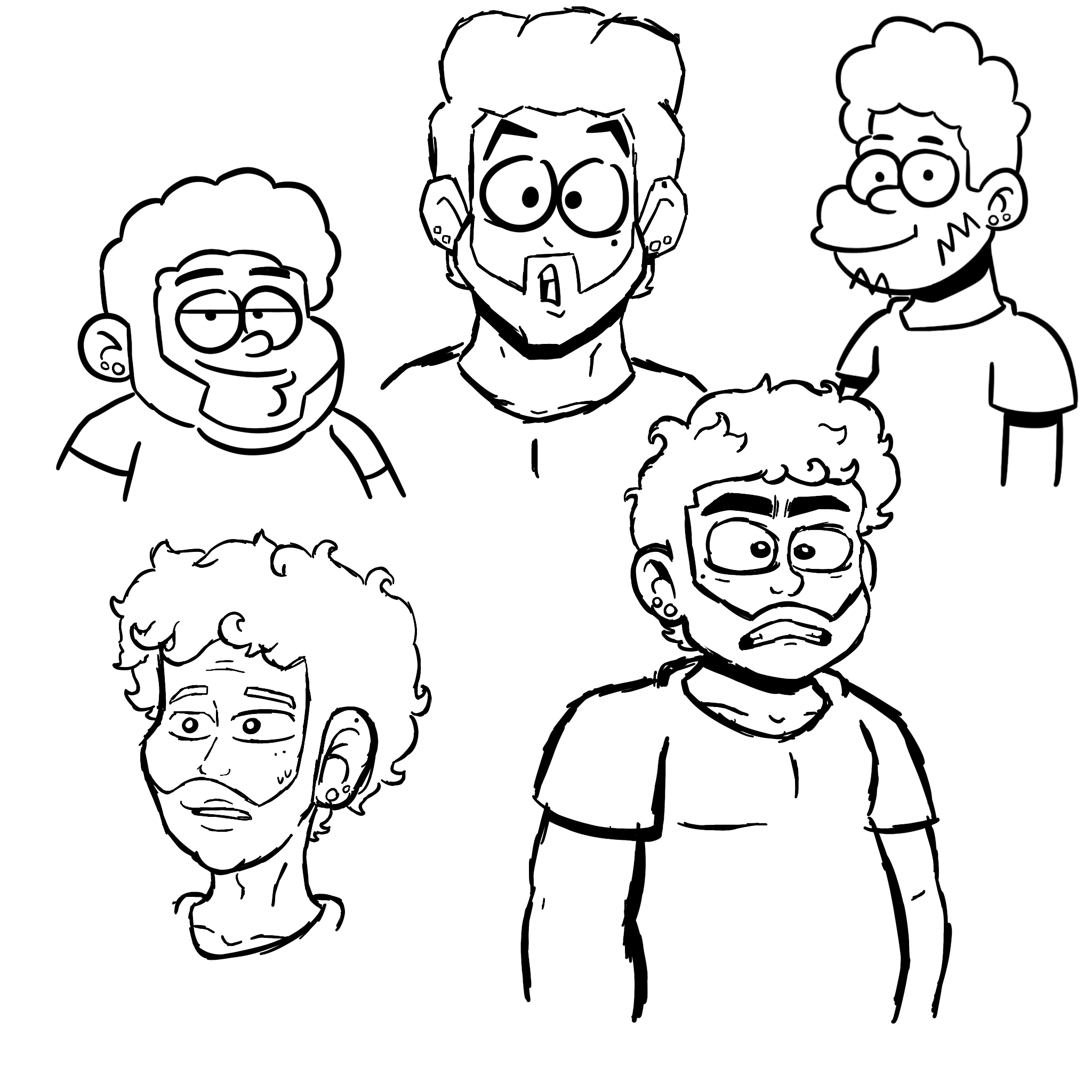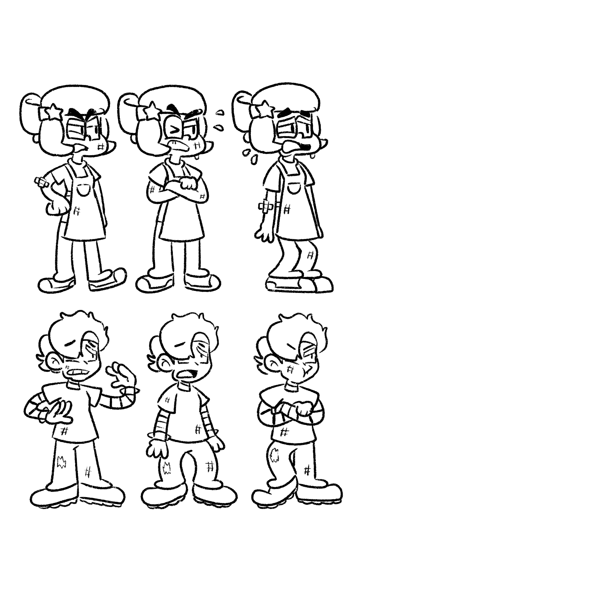 A collection of character expressions, in-progress works, quick drawings, and uncolored pieces. Also more character designs.