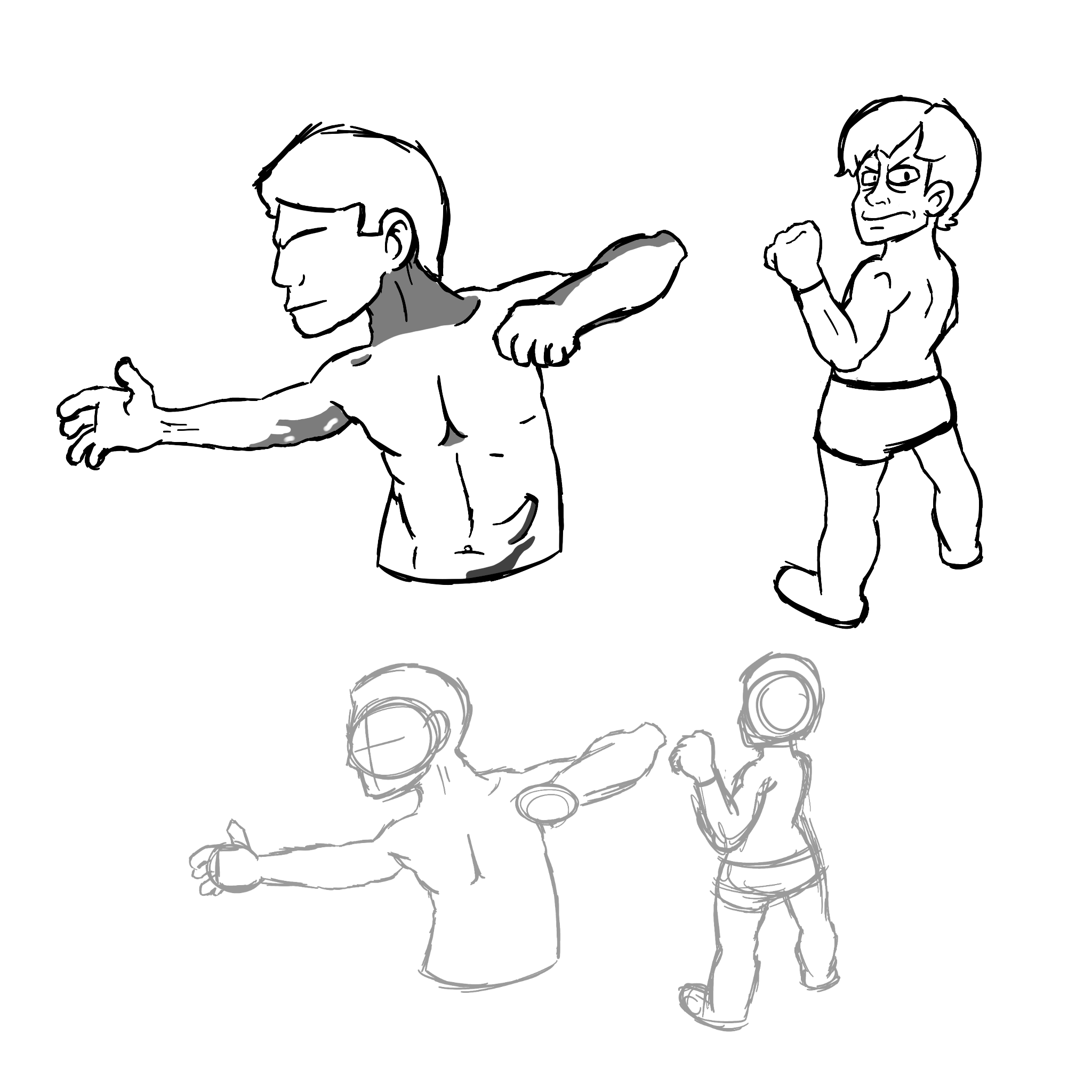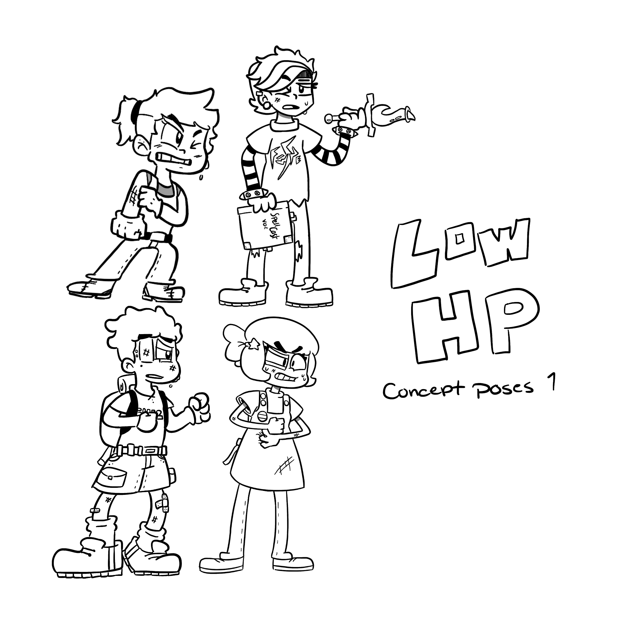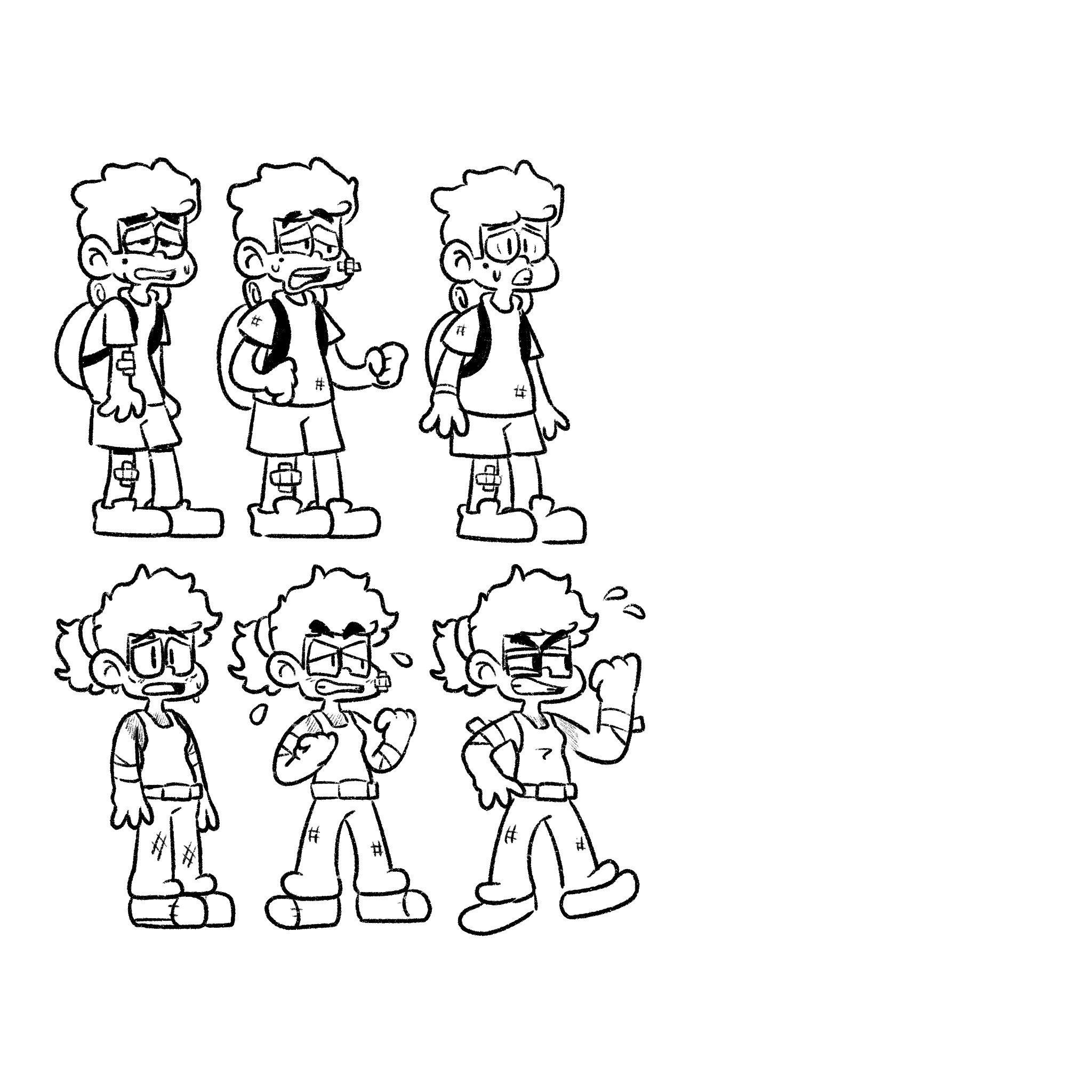 A collection of character expressions, in-progress works, quick drawings, and uncolored pieces. Also more character designs.
